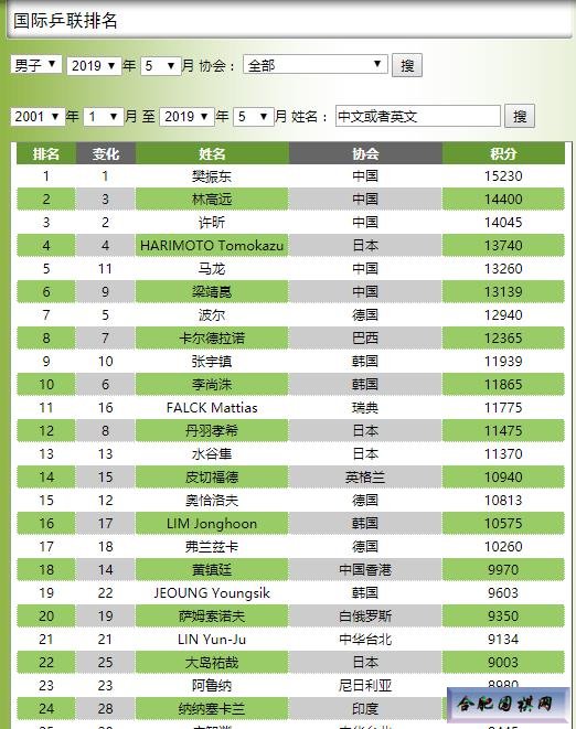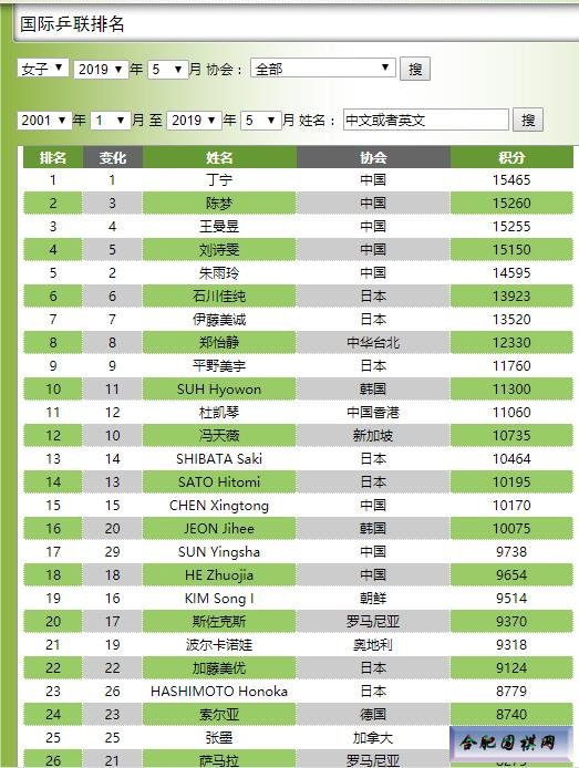 乒乓球排名