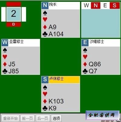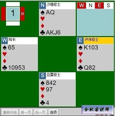 “要是我死护住我的两低花套是否好些呢?”沙维修士问道,“这样亚雷修士就可以留住四张♠了。”