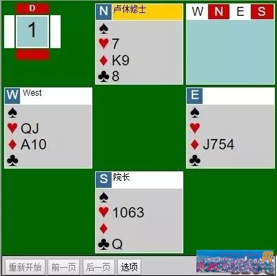 “……然后我出王牌到K,发现分配不利,再将吃一墩♠,把♠做好。”