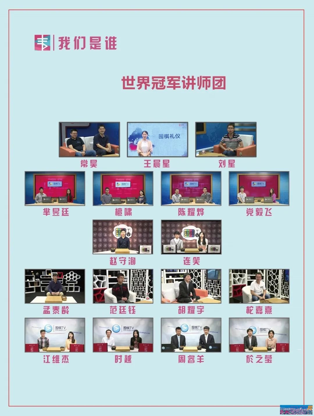 导师团介绍 ![]() 刘星 中国国家围棋队队员,围棋TV创始人之一。 ![]() 赵守洵 职业五段,围棋TV创始人之一。 ![]() 孟泰龄 职业七段 2011年中国围棋甲级联赛冠军队成员。 ![]() 檀啸 中国男子围棋队运动员,围棋世界冠军。 ![]() 陈耀烨 中国男子围棋队运动员,围棋世界冠军。 ![]() 范廷钰 中国男子围棋队运动员,围棋世界冠军。 ![]() 柁嘉熹 中国男子围棋队运动员,围棋世界冠军。 ● ● ● ● ● 更多世界冠军导师陆续揭晓 ![]()